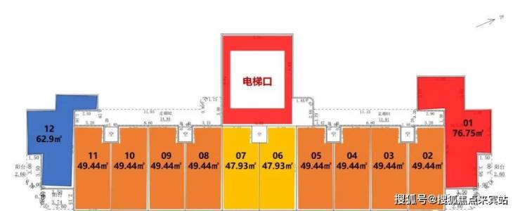 ① 1栋住宅户型:47-49㎡单房、63㎡一房一厅、77㎡两房一厅
