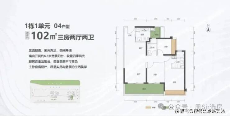 102㎡的3房2厅2卫,折后总价378-410万/套,单价3.72-4.03万/㎡。