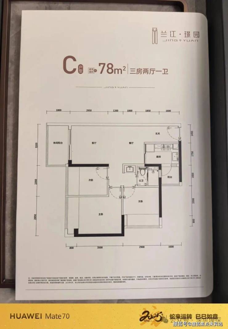 78m²的3房2厅1卫,设计的经典竖厅格局,进门入户玄关,客厅3.2米开间,LDKB一体化设计,三开间朝南,动静分区,分别做到了主卧12.43m²/次卧8.32m²/次卧6.76m²(实测面积,去掉墙体),L型厨房带1个小生活阳台2.56m²,卫生间三段式干湿分离,得房率78.8%(不含赠送),客厅阳台5.76平西南朝向,看谷仓府。套内面积61.38m²+飘窗6.56m²+阳台4.16m²=实际套内72.1m²,加上赠送面积后得房率约92%。