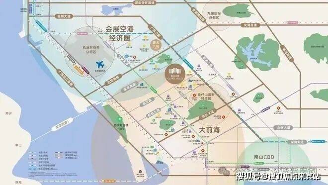 【干道线路】道路呈现“四纵两横”的布局,“四纵”指沿江高速、宝安大道、107国道,京港澳高速;“两横”指机场南路、西乡大道;10分钟内可进入沿江高速快速到底前海地区;