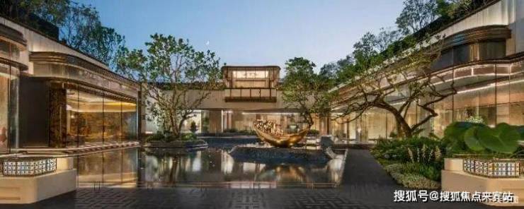 园林设计以"一轴双园,三进五院"为理念,打造约330米中央景观轴串联南北双园。园区内,金鳞墙(由2400片电镀金鳞片组成)、一城风华门(56米长、10米高)、星月聚宝盆等艺术景观节点,形成浓厚的归家仪式感。
