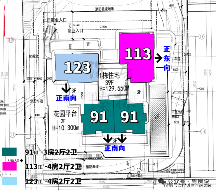 91㎡的3房2厅2卫,设计的是经典竖厅格局,进门入户玄关,客厅3.3米开间,LDKB一体化设计,动静分区,三开间朝南,主卧转角飘窗带1个设备平台,U型厨房,公卫三段式干湿分离,还带1个设备平台,得房率约74.5%(不含赠送),正南朝向。加上赠送约90%得房率。