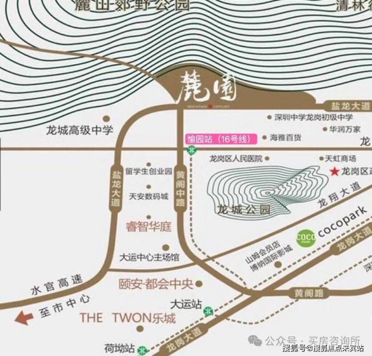 麓园位于龙岗中心城黄阁路和盐龙大道交汇处(即龙城高级中学旁),距16号线愉园站步行距离约500-800米左右。项目的总体容积率3.2,在目前市面上属于相对较低水平。