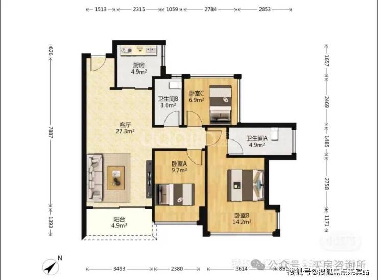 89㎡三房两卫