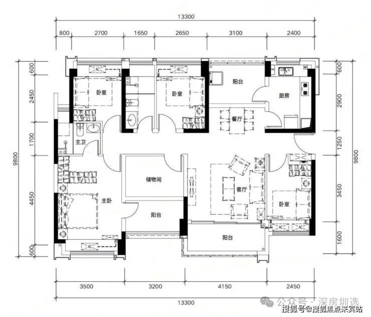 E03户型:约135㎡ 稀缺五房两厅两卫:
