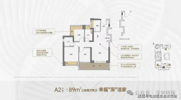 📍【户型】约89㎡三房两卫/110-128㎡四房两卫