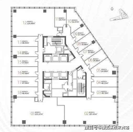 ② 塔楼商业:位于5-16层,整体面积约14793.5㎡,按套分证,标准层高3.3米
