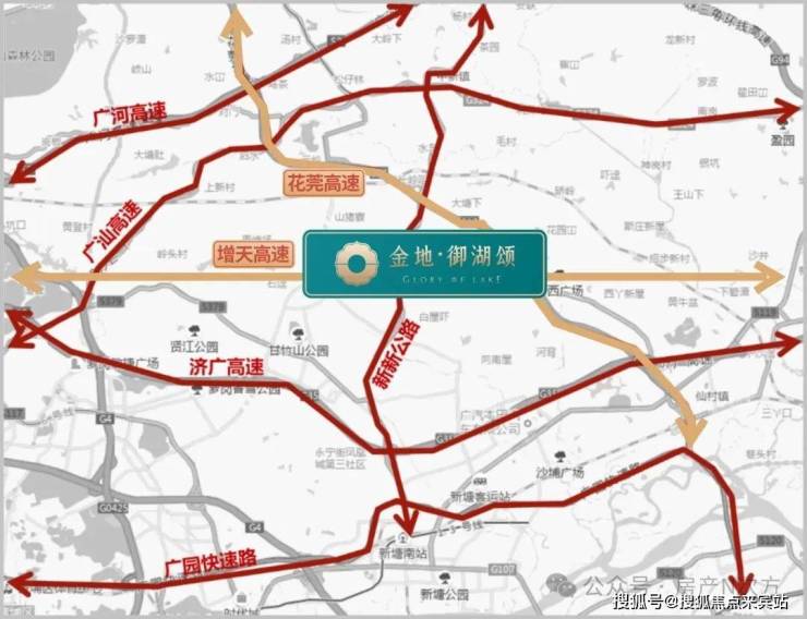 △ 项目周边6条高快速路链接湾区:济广高速、增天高速(预计2025年开通)、花莞高速、广园快速、广惠高速、广深高速等