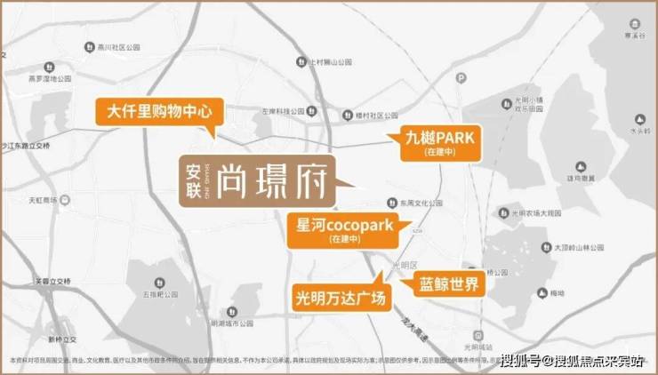 商业配套:安联尚璟府自带约3500㎡社区商业,满足日常生活基本需求,2.5公里范围内有光明成熟商业万科广场、蓝鲸世界、正力时代广场等 ,周边商业配套面积超过15万㎡。在建的光明星河COCO City(6.3万㎡)预计2025年12月19日开业,将引入盒马鲜生、寰映影城、海底捞等主力店及光明乳鸽等本土老字号,打造"科技+生态+社交"三核驱动的区域标杆。