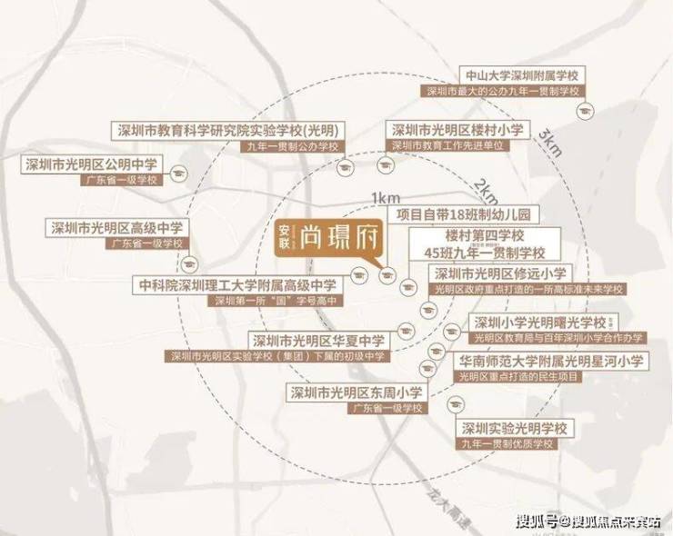 学校配套:安联尚璟府自带5500㎡18班幼儿园,可让孩子享受家门口"目送式"教育。根据2025年光明区学区划分,项目所属楼村社区对口东周小学(省一级,约1.3公里)、华南师范大学附属光明星河小学(约1.1公里)、修远小学(约500米)、深圳小学光明曙光学校(约800米),南科大荔园学校小学部(距离约1.1公里)等优质小学。初中对口华夏中学(36班公立,约1.5公里)、南科大荔园学校初中部、深圳实验光明学校初中部(约2.2公里)、光明高级中学集团(约3公里)等 。