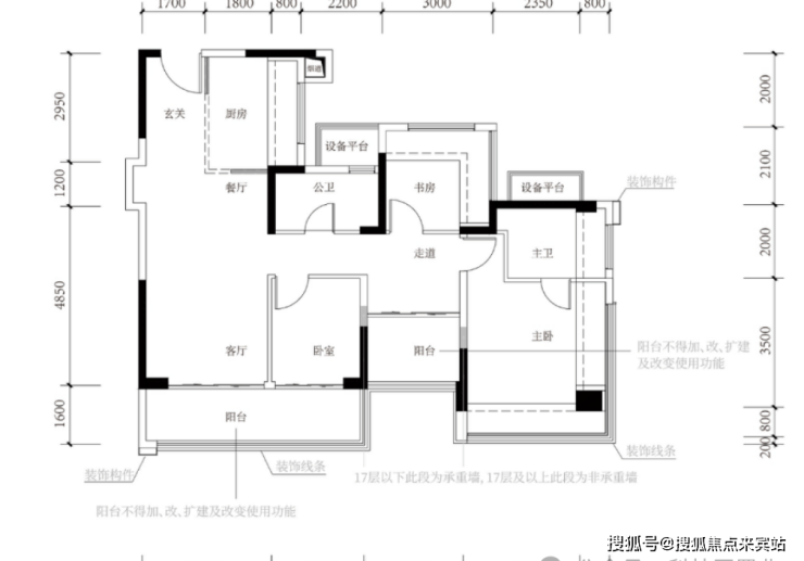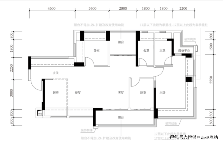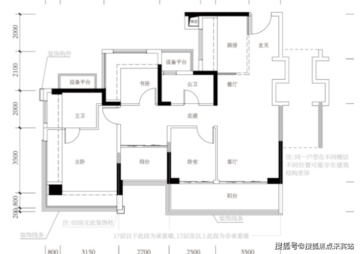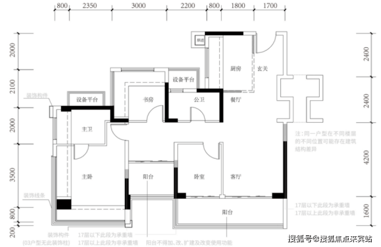 创新型成长户型,适应家庭不同阶段的需求变化,拔墙设柱设计、分户S墙、创新LDKC内外亲子双区等