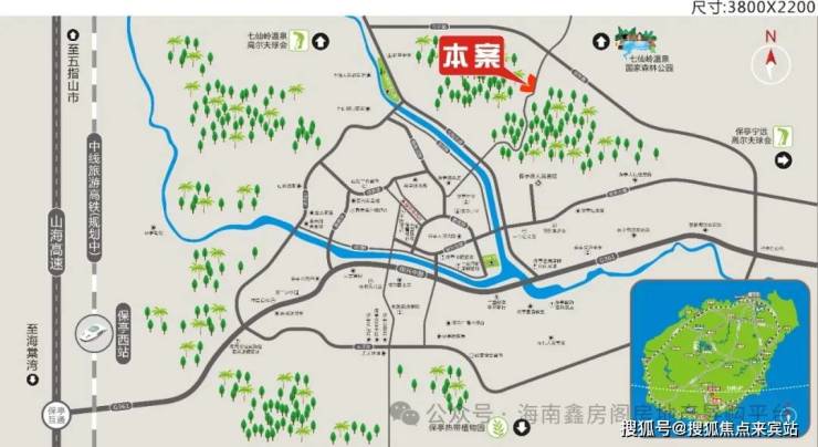项目位于保亭东环路以南,七仙大道以北,东临029乡道,项目与海棠湾区距离33公里仅需20分钟车程,便可享受“国家海岸”海棠湾的顶级配套,有301医院、会展中心、国家免税城、高尔夫球场、海洋公园、五至七星级国际酒店带,全方位提升了保亭的区位优势及配套优势,项目距离三亚机场也仅需50分钟车程,最大程度的方便了与三亚的衔接,项目北距五指山市39公里,40分钟的车程;东距陵水40公里,约45分钟车程,另外中线高铁计划2023年开工,起于海口站,向南途经定安-屯昌-琼中-五指山-保亭-止于三亚站,形成了无缝的山海互动与蓝海相接。