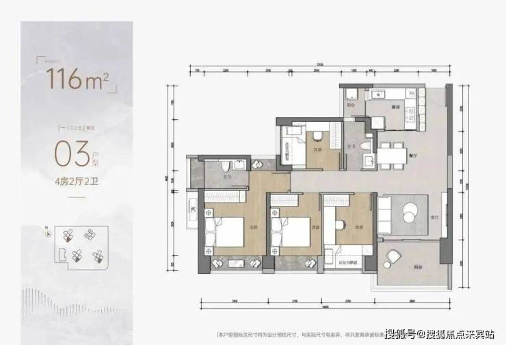 建面约116㎡的全南向户型