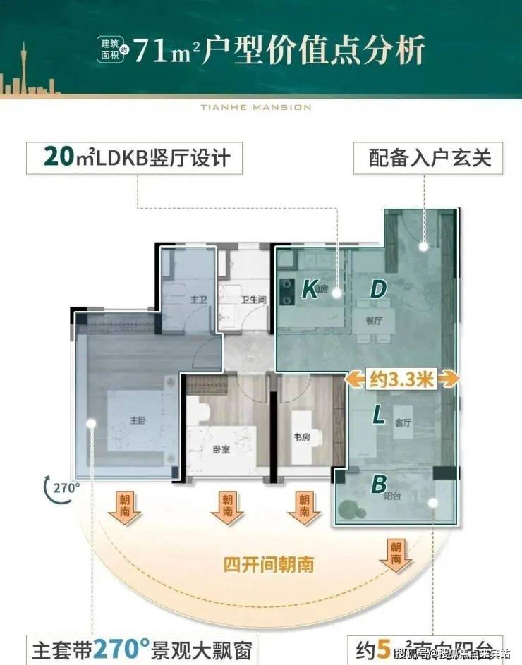 它给预算不多的买家,在天河一个前所未有的上车机会。重点是在空间设计上,三房两卫,让你根本挑不出什么毛病。主套的L型大飘窗、约5米宽的大阳台、三卧室均为朝南向、U型大厨房......通通安排上。同样的预算,别说天河,去其他区域都未必能买到这个全面的产品。