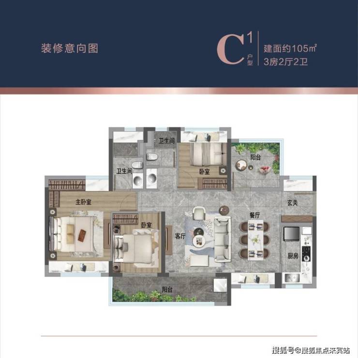 05/06:105平米3+1房 两位 (C1户型 横厅)
