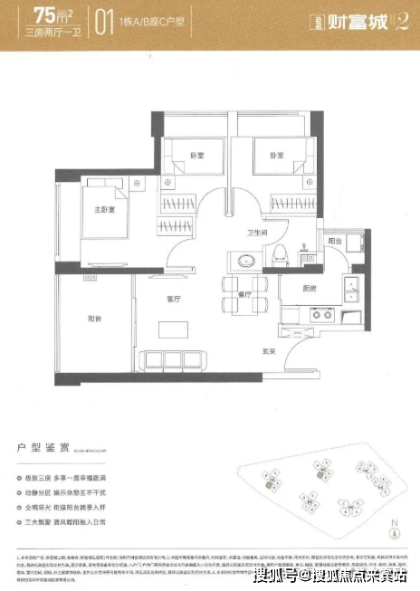 75㎡ 3 房 2 厅 1 卫
