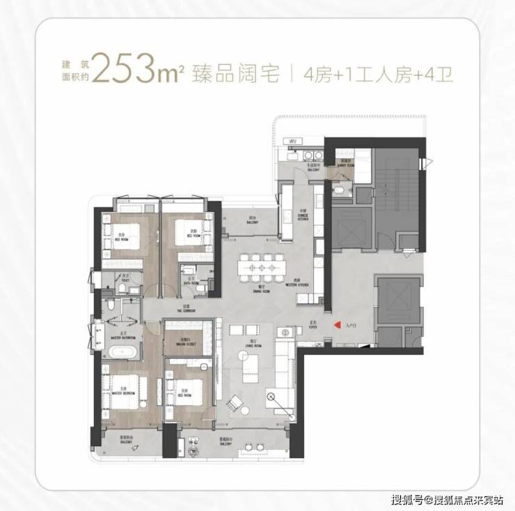 T9/T10栋:总高53层,4梯3户,183-270㎡4房及270㎡复式。