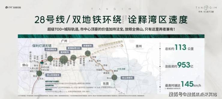 保利灯湖天珺南侧规划佛山地铁6号线,北侧规划28号线(设计总包管理合同已签署)奇槎站,未来可直接通达白鹅潭CBD、琶洲CBD和东莞松山湖,将为板块导入大量人流和资本。