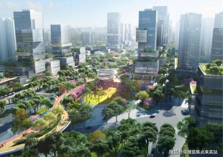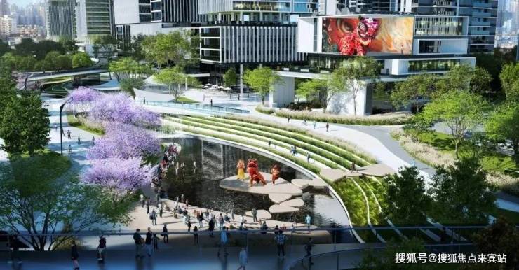 并且商业与城市公园绿轴结合,在商业的模式上创造性打造半开放,半自然的商业消费体验。