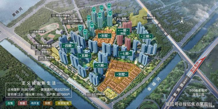时代都荟大境总占地面积约38万㎡,总规划面积约102万㎡,规划的户数就超过7000户,而容积率仅为2.0,绿化率却高达35%,是名副其实的超百万方人居社区。