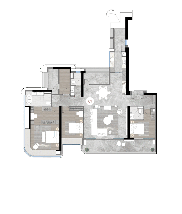 建面约254㎡与建面约248㎡这两个户型,其实布局相似,只是面积大小会稍有不同。两者都是四开间南向采光,契合舒适人居需求。而且具有南北通透LDKB大通厅、客餐与中西厨一体化设计,空间感得到极致拉伸,为日常起居与家庭聚会增添惬意与自在。
