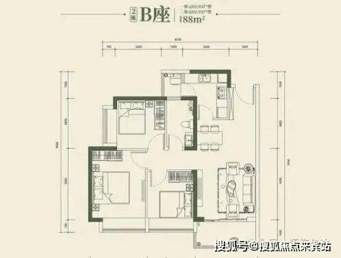 88平方米3房2厅2卫:适合三口之家或二孩家庭居住,功能性强,满足多种生活需求。
