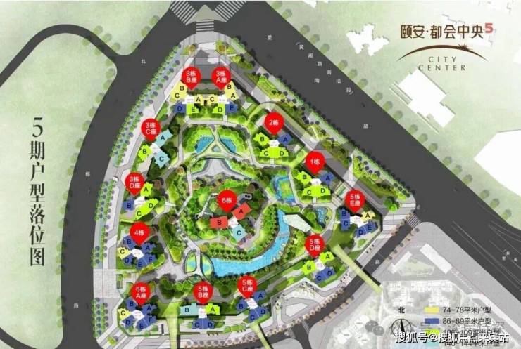 颐安都会中央5期,总占地面积4.9万㎡,总建筑面积约23.89万㎡,容积率3.5,绿化率32%,共由6栋13座住宅组成,总高28-30层,其中本次推出的5栋A/B座住宅30F,总规划1643户,车位占比1:1.05。5栋A座3梯6户,5栋B座2梯4户设计,层高3米