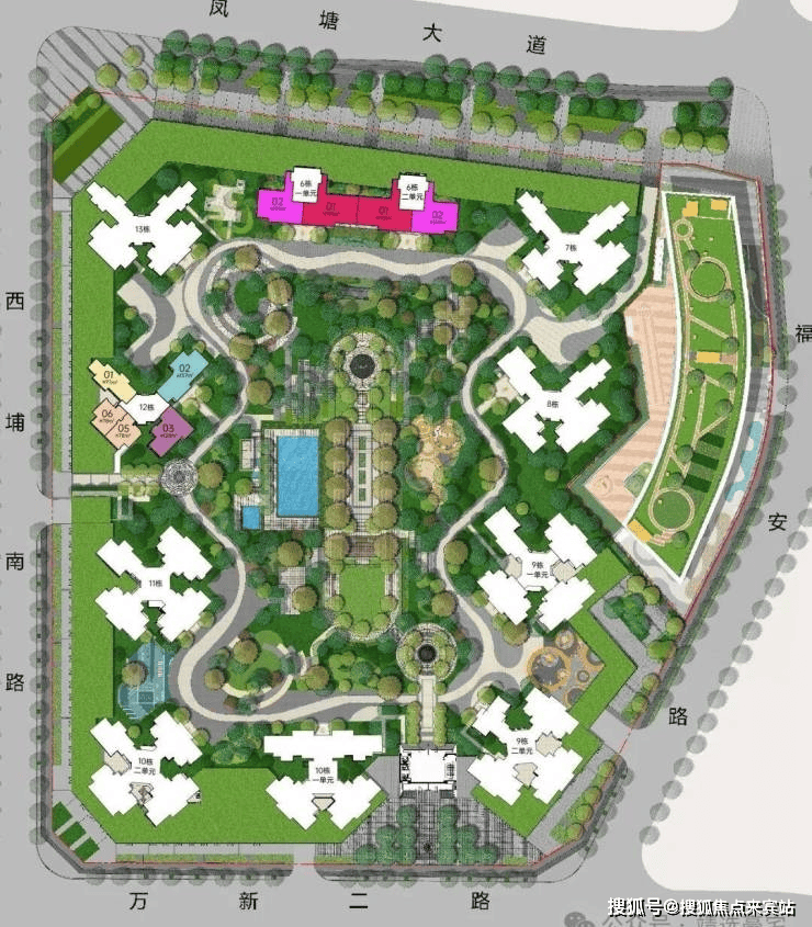 配备全龄子母双泳池、亲子乐园、交流花园,构建全龄活动功能配套,主出入口列阵式礼仪轴线,体现归家仪式感,品质尊崇感