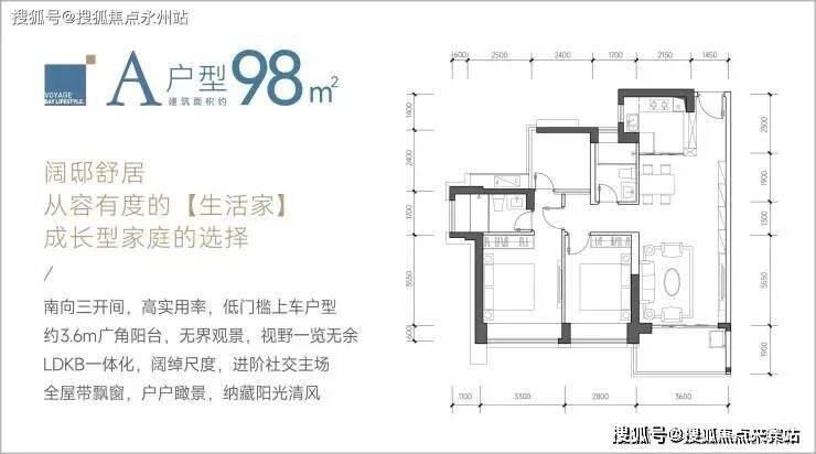 98㎡的 3 房 2 卫户型:采用竖厅设计,动静分区合理,活动区与休息区互不干扰,保证了居住的舒适度和私密性。