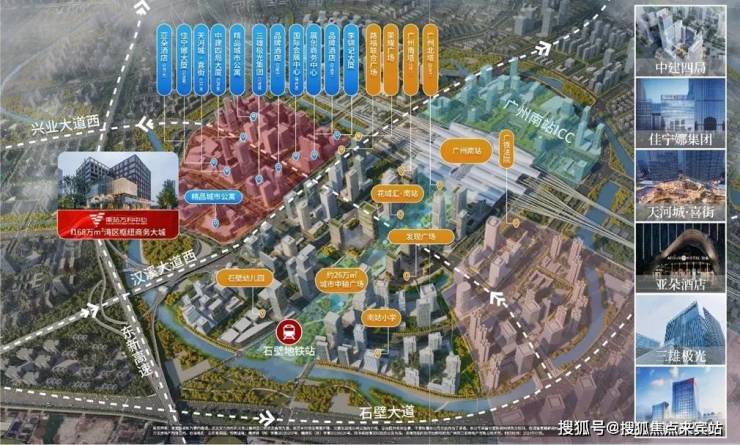 目前,中建四局总部、李锦记华南总部、三雄极光总部、健力宝华南区总部、佳宁娜集团、华南中璟、广州中车等企业已签约进驻。