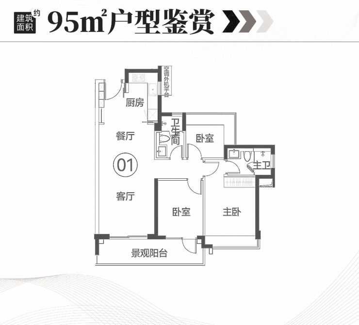 96㎡三房户型,做到了三开间朝南,阳台也有高达6米的开间,那么采光和通风就不成问题。