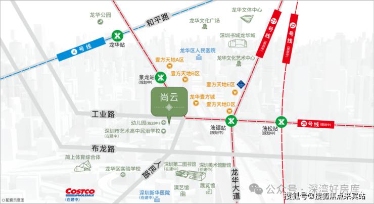 ⭐4号线(已开通):龙华站直线距离约1000m,深圳纵向城市交通中轴。