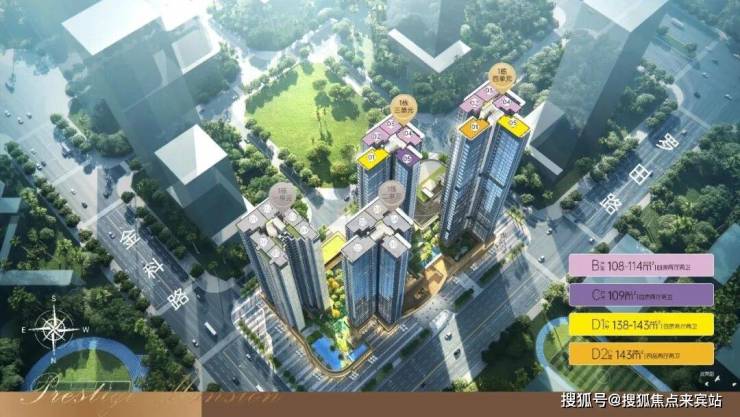 本次现售的是1栋-3单元和4单元2栋楼,合计约300套,梯户比为3梯5户,建面约 108㎡、109㎡以及 138㎡四房。
