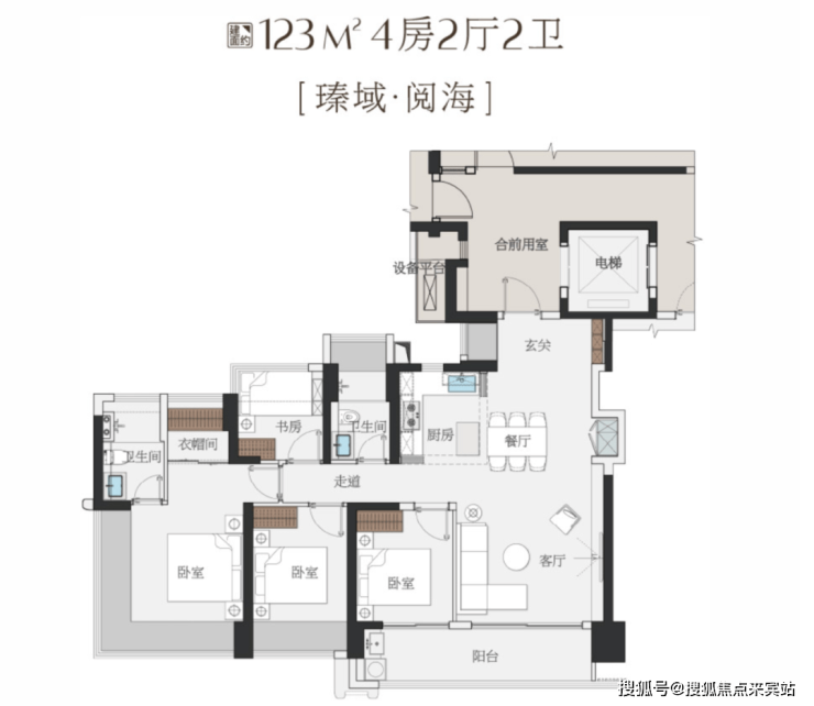 宝中核芯区的一线海景是难以复制的稀缺资源,项目最大化拉宽采光与观海面,超半数户型实现“头排海景舱”体验。其中建面约123㎡的四房,是含海量极高的低门槛海景户型,采用约17.8米超宽景观面设计,将前海湾壮阔海景、大铲岛轮廓与滨海文化公园绿意一并纳入室内。