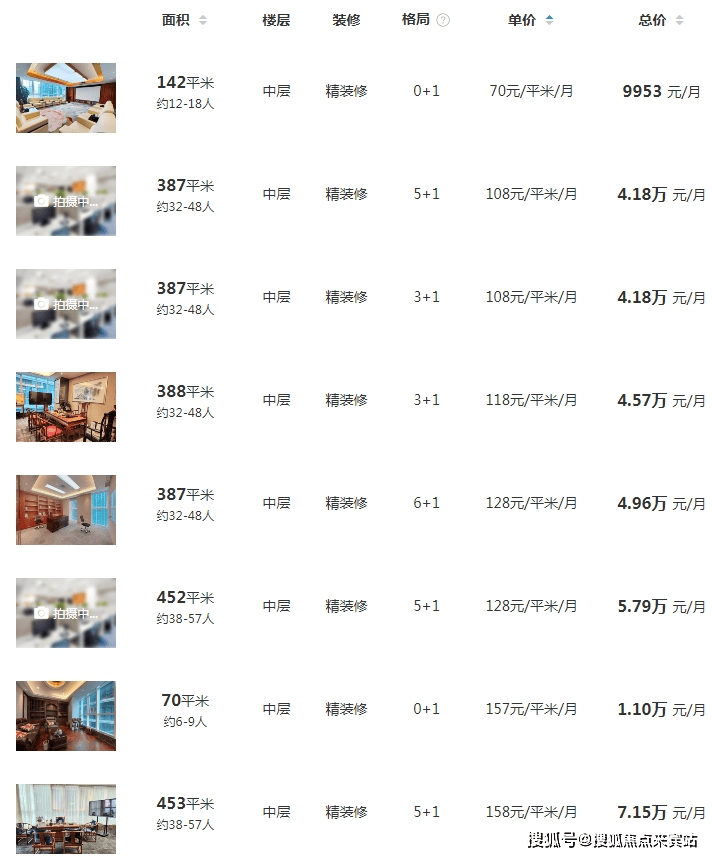 租金报价:108-160元/㎡