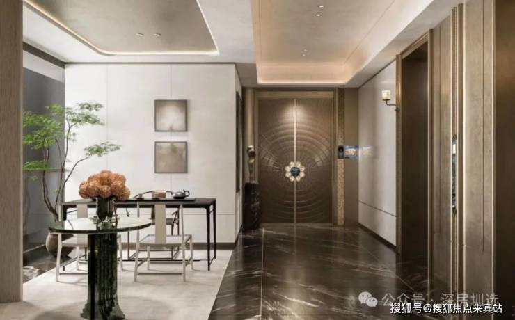 三重礼序归家:酒店式南北双大堂、单元大堂、酒店式车库大堂3重尊享归家动线,南大堂约12米震撼层高,北大堂约6米挑高,奢阔空间给予归家尊崇仪式感;