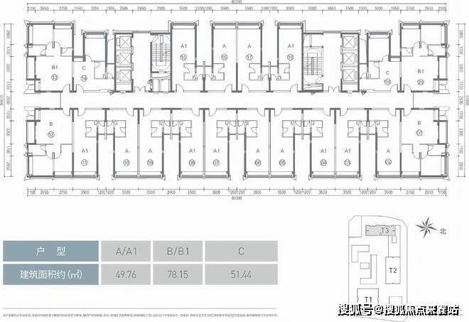 户型面积:490-500-2170㎡ 一层4户2000-2100