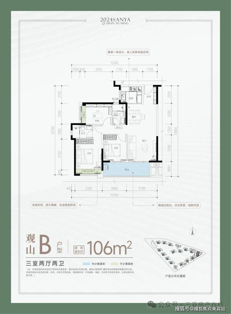 【住宅户型】A户型 建面约98㎡三房两厅两卫