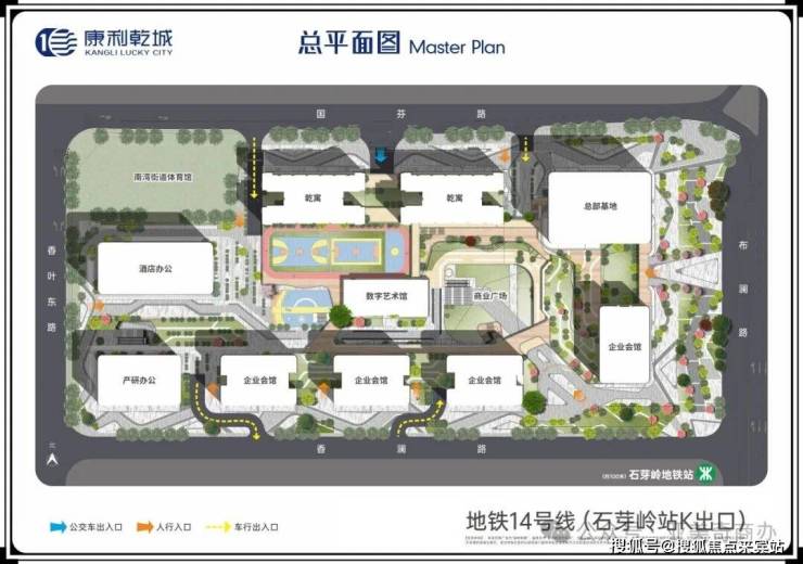 康利乾城属 14、17 号线双线交汇的地铁上盖物业,周边有 3 条高速、2 条快速路,交通便捷。