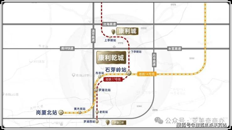 距双地铁(14&17号线)交汇站——石芽岭站仅百余米,14号线2站罗湖,3站福田,17号线直达罗湖口岸;