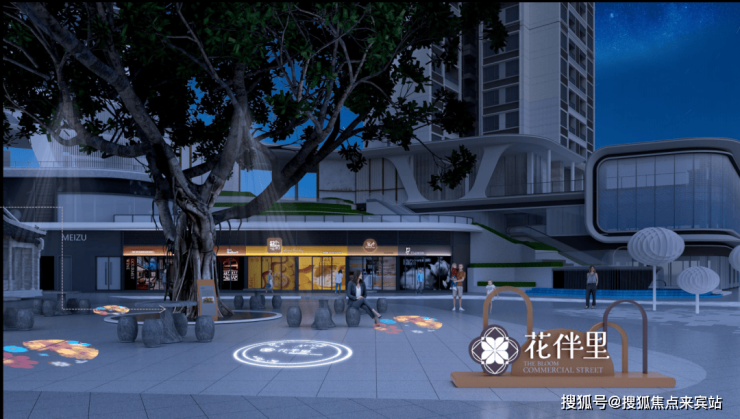 约1400㎡花伴里叠景空中商业街,邻里商业街自然与艺术交融,外延绿岛广场供休闲散步,满足楼下多元商业需求。