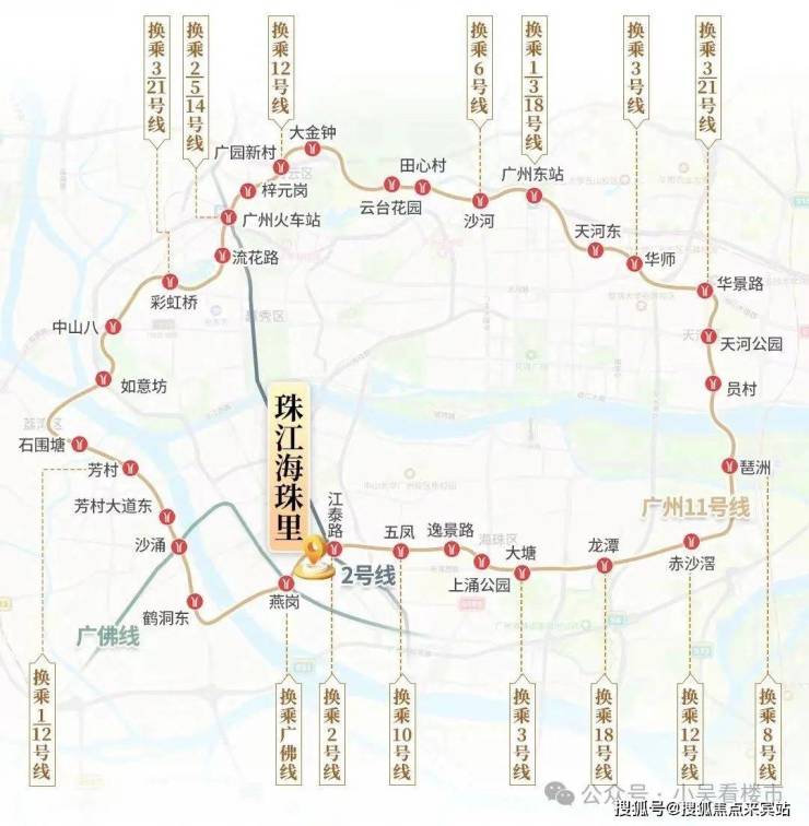 项目距离地铁2号线江泰路站直线距离约400米左右,但是由于中间隔了一座体育馆,目前步行去地铁口只能绕路走燕子岗路转到江燕路才行,因此步行距离大概1.1公里,步行时间约18分钟左右,江泰路这个站今年还会开通11号线大环线,届时从项目出发,去往中心五区都非常方便,该线路可转广州近80%的地铁线,开发商☎☎℡TEL;400-859-7606,项目距离广佛线地铁燕岗站也是1.1公里距离,步行约18分钟左右。
