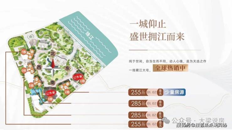 ● 户型:建面约233-285㎡四至五房,东向/东南向一线望江,极致3.4-3.6m层高