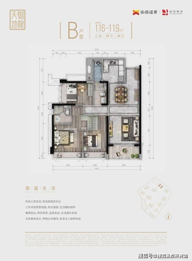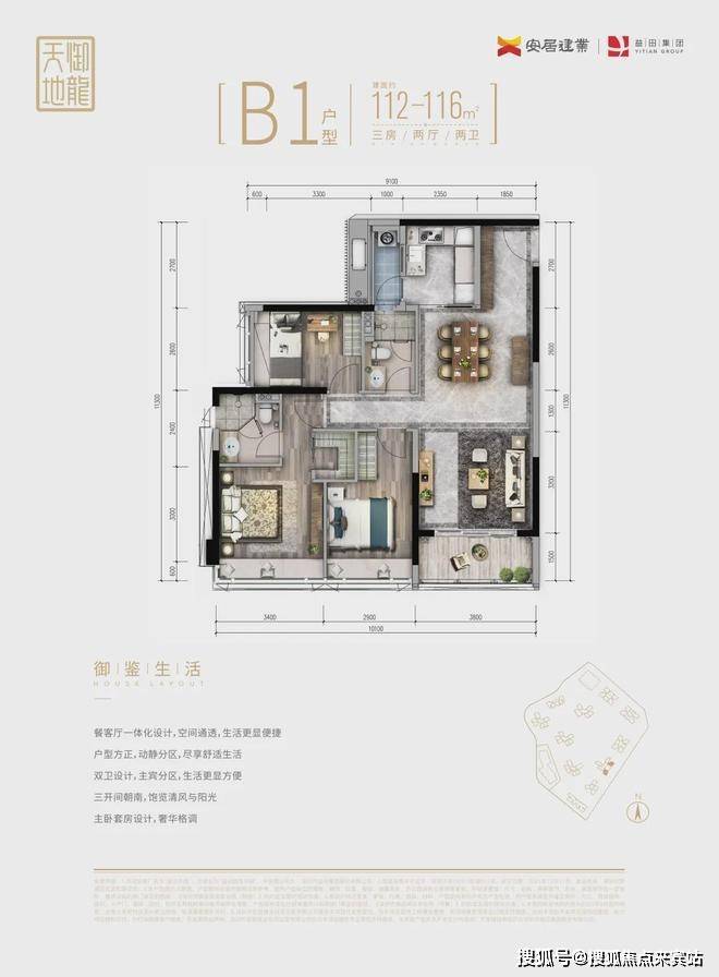 面积:103-116㎡3房3卫197-200㎡4房3卫 公寓124-295㎡