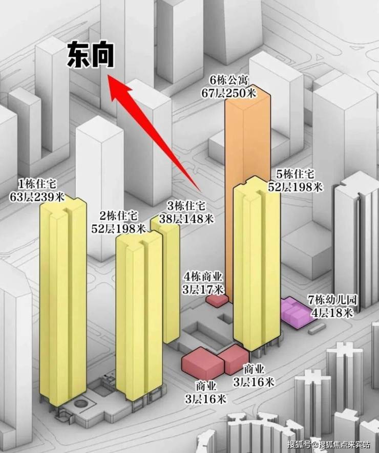 项目规模:占地3.85万㎡,总建面26.3万㎡,容积率7.59,限高250米;涵盖住宅(17.7万㎡)、商务公寓(7万㎡)、商业(1万㎡)及幼儿园等公配。