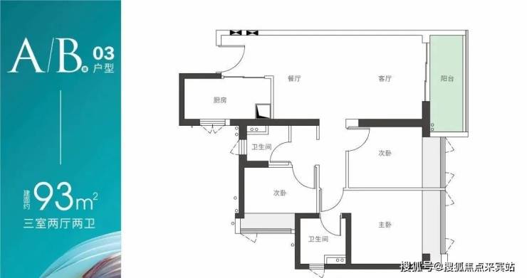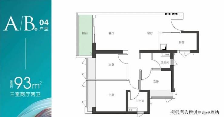 93平方米户型创新采用三开间朝南布局,双卫设计满足多代同住需求,主卧套房配置彰显生活品质。