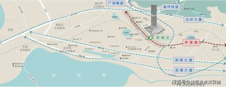 2⃣多维交通体系 距侨城北地铁口仅3分钟路程,15分钟内即达北环立交、广深高速,通往福田CBD、前海中心、宝安机场及珠三角各方向