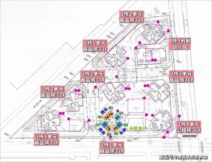 天健瑞云府,由天健集团+深福保+深高新集团3家国企联合打造,总占地面积约3.6万㎡,总建筑面积约22.49万㎡,计容建筑面积约16.46万㎡,容积率4.75,绿化率30%,共由8栋32-36层高住宅组成,分3个地块开发,不过花园都是共享连通在一起的,其中1栋1单元/2栋2单元/3栋1单元住宅33F,1栋2单元/2栋1单元/3栋2单元住宅32F,2栋3单元/2栋4单元住宅36层,4栋是1所9班制幼儿园。