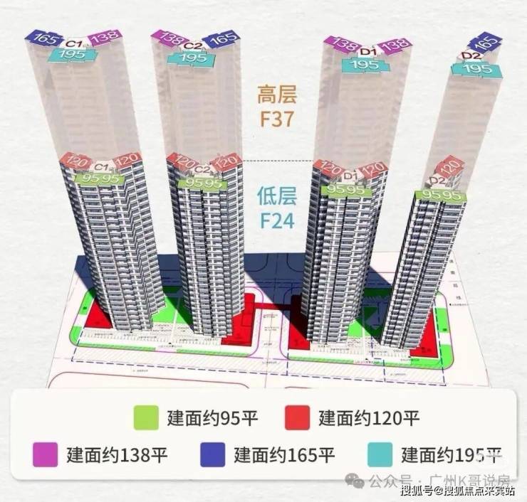 项目规划有4栋37层高层住宅楼,住宅楼都分为高区和低区两部分。主要区别在高区和低区的电梯相互独立运行,每部电梯仅停靠对应楼层。这样能大大缩短候梯时间,日常出行更加高效。梯户比和户型也不同,低区为3-24层两梯四户、预测户型有90-120-160㎡三种。高区为25-37层两梯三户,预测户型有120-160-190㎡偏改善产品。