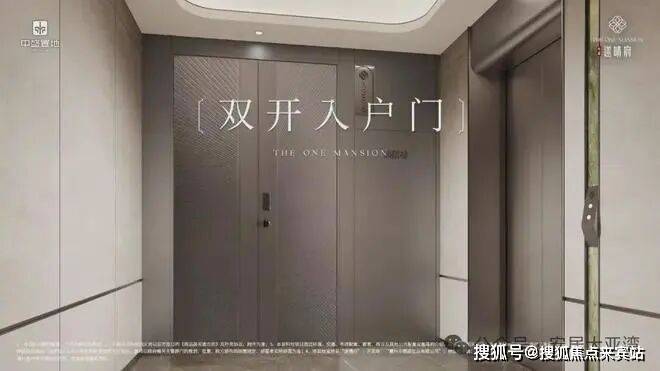 乘坐上海三菱电梯上楼,入户门是豪宅专用铸铝双开大门,门墙一体设计,造价要比普通钢质门贵5-8倍。